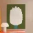 Il design minimalista è caratterizzato da una forma stilizzata di albero bianco con una base verde acqua. La forma astratta spicca e cattura l'attenzione con la sua semplicità e i suoi colori contrastanti.