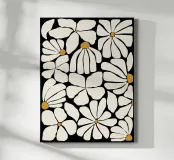Astrazione, capricciosa e gioiosa fioritura di margherite color crema con centro giallo al calar del sole.