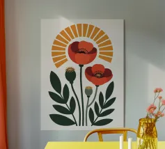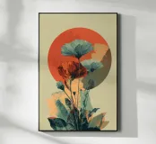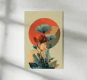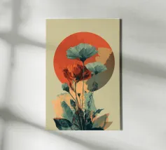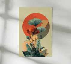 Un gioco stratificato di piante selvatiche e geometria astratta, Wildflower Eclipse cattura l'equilibrio tra caos e calma. Le espressive silhouette floreali - rese in tonalità verde acqua, cremisi e ocra sbiadito dal sole - emergono da macchie d'inchiostro testurizzate e si ergono audaci davanti a un sole arancione bruciato. Questa composizione pittorica è nostalgica e contemporanea al tempo stesso, fondendo la fragilità naturale con la tensione grafica. Un omaggio moderno alla geometria poetica della natura.