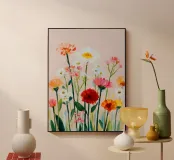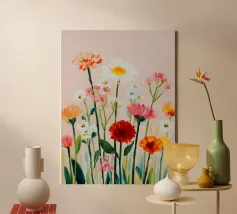 A joyful arrangement of wildflowers painted in soft brushstrokes and fresh colors. This artwork brings a light, natural rhythm into your home and pairs beautifully with calm, neutral interiors.
