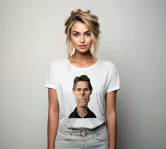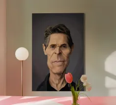 Illustrazione caricaturale umoristica del noto attore americano Willem Dafoe. Una delle caricature realizzate per la serie Celebrity Sunday, in cui un personaggio famoso viene ritratto nell'arco di una giornata. L'idea è di mostrarli come in una fototessera per avere coerenza.