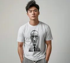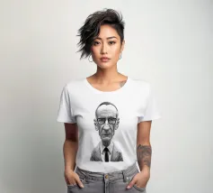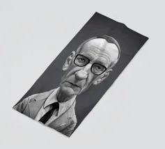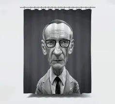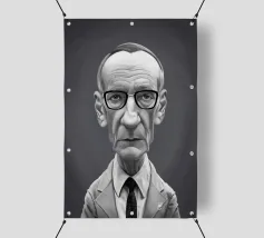 Illustrazione caricaturale umoristica del noto romanziere americano e scrittore del famoso libro "Naked Lunch", William Burroughs. Una delle caricature realizzate per la serie Celebrity Sunday, in cui un personaggio famoso viene ritratto nell'arco di una giornata. L'idea è di mostrarli come in una fototessera per avere coerenza.