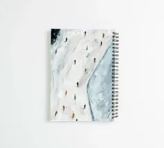 Quest'opera d'arte raffigura una prospettiva aerea dinamica di sciatori dispersi su un campo di neve luminoso, dipinto con pennellate espressive e strutturate. Il contrasto tra l'ampia superficie bianca e i vividi accenti di rosso, arancione e verde crea un senso di ritmo e movimento. Ogni figura lascia una traccia sottile, suggerendo sia l'individualità che il flusso collettivo. La composizione trasforma una semplice scena invernale in una meditazione astratta sul movimento, lo spazio e la presenza umana, evocando energia calma, equilibrio e la bellezza fugace dell'attività invernale.