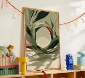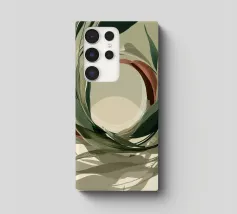 Una serena composizione astratta in cui linee botaniche fluide formano una graziosa cornice circolare, proiettando ombre delicate su una tela illuminata dal sole. Questa sofisticata opera d'arte digitale fonde i toni della terra con dettagli intricati, evocando un senso di calma e movimento naturale. Perfetta per gli interni che abbracciano un'eleganza tranquilla, forme organiche e un moderno minimalismo.