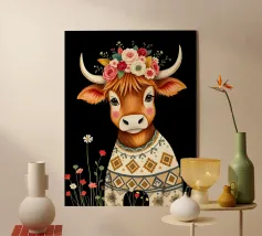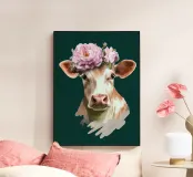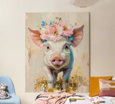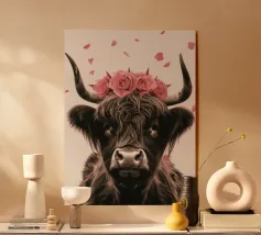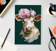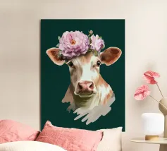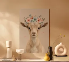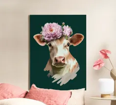 Un ritratto composto in cui la morbidezza si impone. Su uno sfondo verde intenso, lo sguardo calmo e la corona floreale trasformano la dolcezza in una tranquilla autorità. Quest'opera d'arte sfida le aspettative di forza e bellezza, presentando la morbidezza come una scelta sicura, inequivocabile, ferma e inequivocabilmente presente.