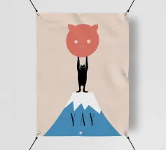 Un gatto potente che solleva il sole sulla cima della montagna.
