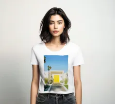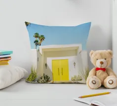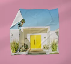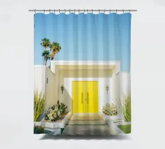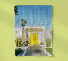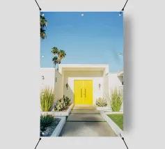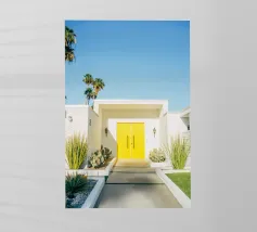 Una porta gialla in un edificio moderno di metà secolo a Palm Sprins, California