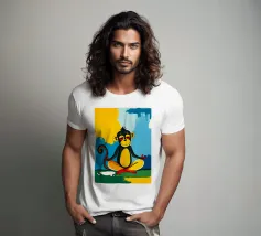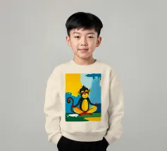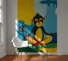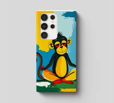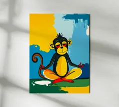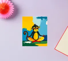 Una simpatica scimmia seduta che fa yoga e meditazione.