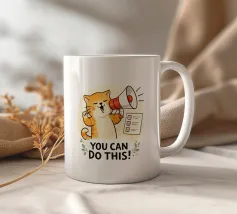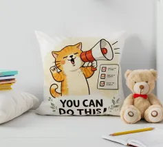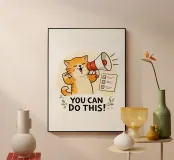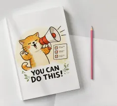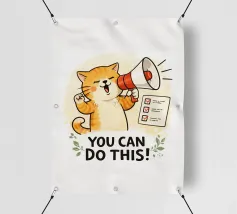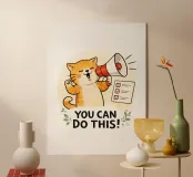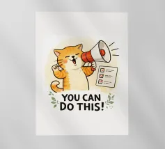Una rassicurante illustrazione di un gatto realizzata in uno stile morbido e disegnato a mano. L'espressione rilassata e la composizione semplice trasmettono incoraggiamento senza pressione. Quest'opera d'arte parla di fiducia in se stessi, coraggio e dell'importanza di procedere un passo alla volta. Perfetta per motivarsi ogni giorno in spazi creativi o interni accoglienti.