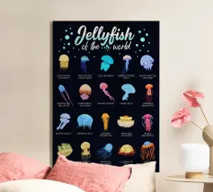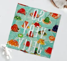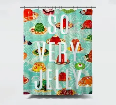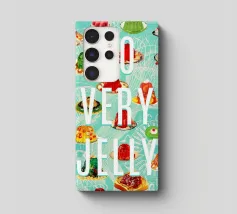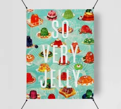 Collage vintage con tantissime gelatine su uno sfondo di disegni retrò di meduse. In alto, scritta bianca con la frase "You Jelly?" (Sei gelatina?). Grafica kitsch realizzata da MsGonzalez.