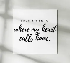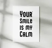 Il tuo sorriso è la mia calma. Espressione d'amore e di San Valentino. Tipografia in nero e bianco (trasparente). È possibile cambiare il colore dello sfondo. Poster tipografico minimalista.