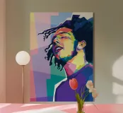 ZDLR in WPAP (Wedha's Pop Art Portrait) è una rappresentazione vibrante e geometrica dell'iconico musicista. Lo stile utilizza colori piatti e audaci e linee nette per enfatizzare l'espressione intensa e la presenza potente di Zack, riflettendo il suo appassionato attivismo. L'opera cattura il suo spirito ribelle e la sua influenza culturale attraverso l'energia dinamica dell'arte WPAP.