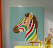 Una zebra creativa con strisce colorate nei colori dell'arcobaleno - un design giocoso pieno di gioia di vivere e di individualità.Zebra con strisce arcobaleno uniche come motivo principale. Armoniosa composizione di colori con un'espressione amichevole. Simbolo di diversità, creatività e orgoglio. Ideale per disegni infantili, moderni o legati alla cultura pop. Un vero e proprio eye-catcher dall'aspetto allegro.