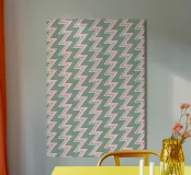 Questa opera d'arte è un motivo a zigzag verde senza soluzione di continuità che unisce l'estetica moderna al fascino retrò. Le linee decise e il verde vibrante aggiungono un'atmosfera dinamica e fresca. Perfetto per chiunque voglia aggiungere un tocco di stile al proprio arredamento. Date un'occhiata e date un tocco di audace eleganza al vostro spazio!