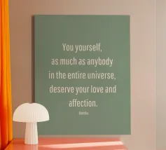 Hintergrund pastelloso con sfondo beige: Tu stesso, come chiunque altro nell'intero universo, meriti il tuo amore e il tuo affetto. (Buddha)