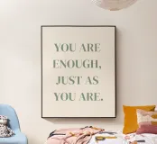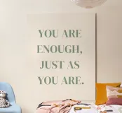 Sfondo beige con scritte verde chiaro: "Sei abbastanza, così come sei".