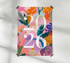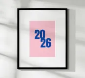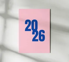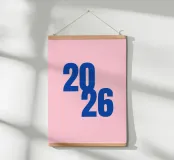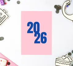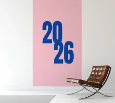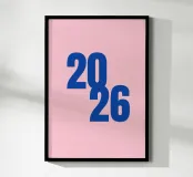 2026 Schriftzug Blau auf Rosa