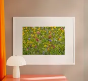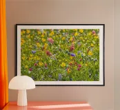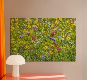 A Symphony of Color: Field of Mixed Flowers poster con telaio in legno