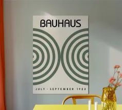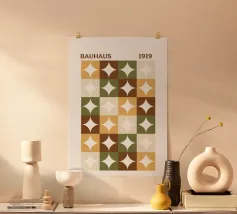 Questo poster con geometria astratta Bauhaus presenta linee pulite, forme decise e un gioco equilibrato di forme e spazi ispirato al movimento di design Bauhaus degli anni Venti. Cerchi, triangoli e rettangoli si intersecano con precisione, creando una composizione moderna e minimalista che affonda le sue radici nell'estetica funzionale. Il poster abbraccia la semplicità, la chiarezza e il forte ritmo visivo, ideale per interni contemporanei, studi creativi o chiunque sia attratto dal design classico modernista. Il suo stile geometrico senza tempo lo rende di grande impatto visivo e versatile.