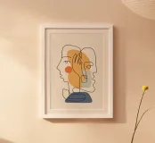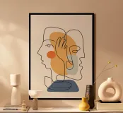 Scopri l'affascinante stampa artistica "Volti Astratti 5" di cityart, realizzata su carta di alta qualità e incorniciata in legno. Questo pezzo d'arte moderna arricchirà qualsiasi ambiente con la sua eleganza minimalista e il design unico, perfetto per il soggiorno o lo studio.