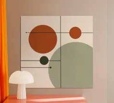 Dieses einzigartige Motiv kombiniert geometrische Formen mit einer harmonischen Farbpalette aus Grün, Schwarz und Rot auf einem warmen beigen Hintergrund. Die präzise Anordnung von Linien, Kreisen und Halbkreisen verleiht dem Design eine moderne und zugleich kunstvolle Ausstrahlung. Perfekt für Wandbilder, Kissen, Handyhüllen und vieles mehr – ideal für alle, die zeitgenössische Ästhetik in ihren Alltag integrieren möchten.