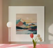 Abstract Mountain Landscape Print - Colorful Lake and Sunset poster