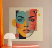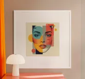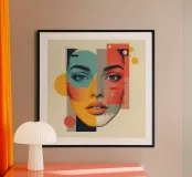 Ritratto geometrico astratto di viso di donna con forme poster