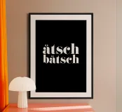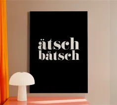 ätsch bätsch, nero, bianco, tipografia, citazione, detto, divertente, ufficio, camera dei bambini, soggiorno, camera da letto, cucina, retrò
