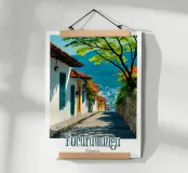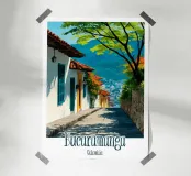 Bucaramanga, la città dei mille parchi, si rivela in questa tranquilla illustrazione di natura lussureggiante e architettura coloniale. Un invito a scoprire la Colombia in modo diverso.
