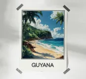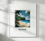 Scoprite una spiaggia da sogno nella Guyana francese, costeggiata da palme lussureggianti e da un mare turchese scintillante. Questo scenario tropicale evoca serenità, con le sue scogliere verdeggianti e la sabbia dorata. Un invito alla calma e alla fuga in un angolo di paradiso naturale.