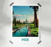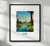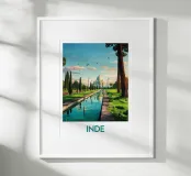 Illustration colorée et ensoleillée du célèbre Taj Mahal, emblème emblématique de l’Inde. Parfait pour une décoration murale inspirante et dépaysante.