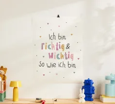 Stampe d'arte con cornice in legno di alta qualità con motivi colorati e affermazioni positive, ideali come decorazione per camerette e sala giochi bambini. Design allegro e stimolante perfetto per creare un ambiente accogliente e motivazionale senza possibilità di personalizzazione. Prodotto realizzato secondo standard europei con materiali sostenibili e resistenti.
