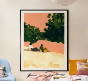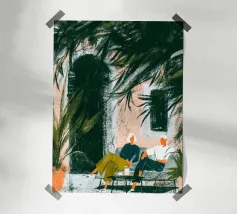 Questo dipinto figurativo contemporaneo cattura un tranquillo momento pomeridiano sotto la calda luce mediterranea. Due figure siedono in una rilassata immobilità, guardando verso un orizzonte morbido incorniciato da un espressivo fogliame verde. Le pennellate ampie e strutturate e la tavolozza di colori solari, pesca, crema e verde intenso, evocano calore, silenzio e calma condivisa. Le forme semplificate e la composizione equilibrata enfatizzano la presenza rispetto alla narrazione, invitando lo spettatore a un momento di riposo e riflessione. L'opera celebra l'amicizia, il vivere lento e la bellezza poetica del tempo senza fretta, rendendola ideale per gli interni moderni,