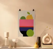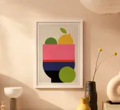 Un design minimalista con forme audaci e colorate che rappresentano limoni e lime in una moderna fruttiera. Perfetta per chi ama l'arredamento pulito e contemporaneo con un tocco di colore.
