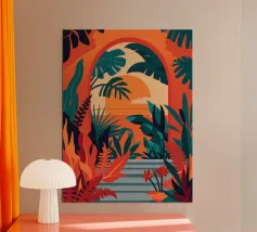 Poster decorativo con illustrazione tropicale e stile artistico contemporaneo, ideale per arricchire soggiorni e camere da letto. Stampa di alta qualità su carta resistente con colori vivaci, perfetta per chi ama l'arte dagli accenti esotici e un tocco naturale nella casa.