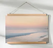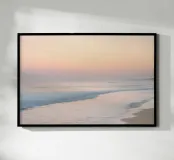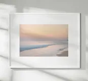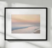 Questa tranquilla opera d'arte cattura un'alba mozzafiato su una spiaggia nebbiosa. Il cielo tenue e pastello e le onde delicate creano un'atmosfera rilassante e pacifica, perfetta per un arredamento ispirato al relax.