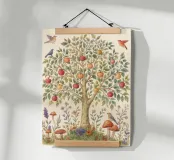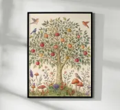 Questa affascinante opera d'arte da parete autunnale botanica presenta un albero di mele stravagante circondato da funghi colorati, fiori delicati e adorabili uccelli in uno stile boho vintage. Perfetto per aggiungere calore stagionale al soggiorno, alla camera da letto o alla cameretta, questo pezzo fonde la bellezza della natura con le accoglienti tonalità autunnali. Un regalo ideale per gli amanti della natura e per chiunque adori l'arte botanica vintage.