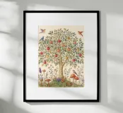 Albero di mele con uccelli e funghi Autunno botanico vintage poster con telaio in legno
