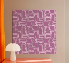 Motivo artistico astratto con sfondo lavanda e linee bianche stravaganti e labirintiche che ricordano un codice segreto. Questo disegno unico e creativo è perfetto per essere utilizzato in vari progetti grafici, tra cui sfondi di siti web, copertine di libri o disegni tessili, e piacerà a chiunque sia alla ricerca di motivi intricati e stimolanti.