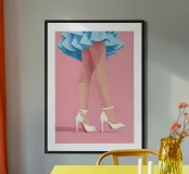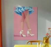 Entrate in un mondo di fantasia con questa accattivante stampa ispirata ad Alice nel Paese delle Meraviglie. Il disegno presenta un paio di gambe allungate e stilizzate con una classica calza a righe bianche e blu, abbinata a un'affascinante scarpa mary-jane nera. La scala stravagante e la qualità onirica evocano un senso di surrealismo e di narrazione giocosa, che ricorda le illustrazioni dei libri di fiabe e la pop art retrò. Questo pezzo è perfetto per aggiungere un tocco di fascino unico e di intrigo artistico a qualsiasi spazio, in particolare a una camera da letto stravagante o a un angolo di lettura. Quest'opera d'arte digitale di alta qualità è presentata in uno straordinario formato 7