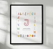 Scopri la nostra splendida stampa artistica incorniciata in legno “Alphabet” di Kartenliebe! Perfetta per dare un tocco vivace e giocoso alla stanza dei bambini, questo design colorato stimola la creatività e l'apprendimento dei più piccoli. Ideale come regalo per la prima scuola o per decorare la cameretta, questa opera d'arte non solo abbellisce l'ambiente, ma offre anche un elemento educativo divertente. L'elegante cornice in legno si adatta a qualsiasi stile di arredamento moderno e rende il tuo spazio unico. Non perdere l'occasione di portare un pizzico di gioia e originalità nella vita del tuo piccolo!