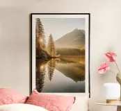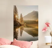 Delicati raggi di sole si infrangono tra gli alberi, si riflettono nel placido lago di montagna e bagnano il paesaggio di una tranquillità dorata. Questo poster naturalistico combina l'idillio montano, la tranquillità della foresta e il potere della riflessione. Ideale per la camera da letto, il soggiorno o l'ufficio, ovunque sia necessario percepire pace, chiarezza e naturalezza. Perfetto per gli amanti della natura e gli esteti.