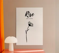 Porta energia e positività nella tua stanza con il poster 'Rise and Shine' di Poppya. Questo design semplice ed elegante è perfetto per incoraggiare un inizio di giornata luminoso e motivante. Adatto per camere da letto o spazi di lavoro, è un'aggiunta ideale per chi cerca ispirazione quotidiana.