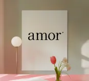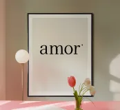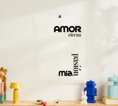Amor, amore in portoghese. Tipografia in nero e bianco (trasparente). È possibile cambiare il colore dello sfondo. Poster tipografico minimalista.