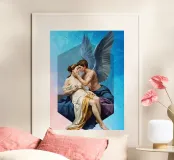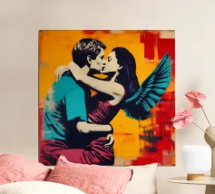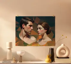 Amore e Psiche (stile Lowpoly) ispirazione da Louis Jean Francois Lagrenee (1767). Venere mandò suo figlio Cupido a punire Psiche, la cui bellezza era stata paragonata alla sua. Ma Cupido e Psiche si innamorarono. Per mantenere il segreto del loro amore, Cupido indossò un travestimento durante le sue visite notturne alla camera da letto di lei. Le sorelle gelose di Psiche rivelarono la sua identità e lei fu punita con una serie di dure prove. Alla fine Cupido e Psiche si ricongiunsero nell'amore eterno.