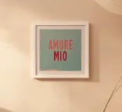 Amore Mio Testo retrò anni '50 in rosa e rosso su turchese poster con telaio in legno
