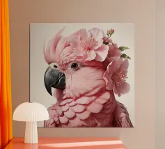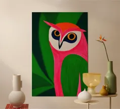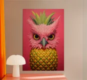 Surreale, giocoso e visivamente assolutamente irresistibile: questo quadro combina un gufo e un ananas per creare una fantastica figura ibrida - un ottimo esempio di moderno pop surrealismo. La texture iperrealistica incontra mondi di colori brillanti tra il rosa, il giallo e il verde. Un'opera che rompe le aspettative e colpisce per l'attenzione ai dettagli, l'ironia e la concisione grafica. L'influenza della cultura pop tropicale è inconfondibile: perfetta per chi ama le affermazioni visive forti e ammiccanti nelle proprie quattro mura. Sapore e vitamine per la vostra cucina!