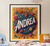 Andrea "la coraggiosa", un'opera d'arte che onora il suo nome con una varietà di fiori.