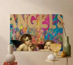 Un tocco giocoso su un capolavoro classico: questi putti sognanti sono rivisitati con un tocco moderno di punti colorati e audaci. Il mix di delicate linee di schizzo e vivaci elementi pop-art rende questo pezzo perfetto per gli amanti dell'arte che amano fondere la tradizione con le vibrazioni contemporanee.