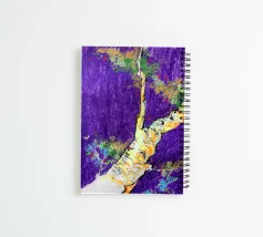 Disegno di un albero, un frammento di albero, a inchiostro nero con pittura acrilica e l'aggiunta di pastello a olio per lo sfondo saturo.